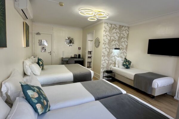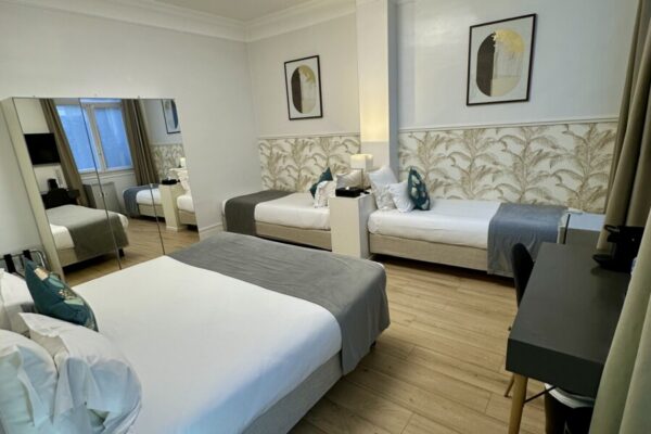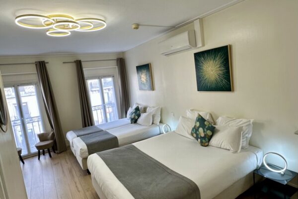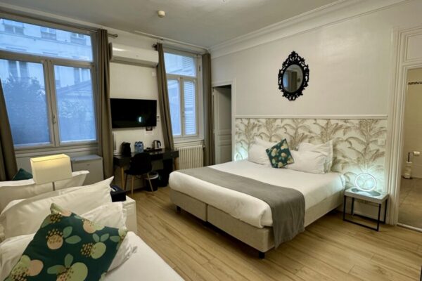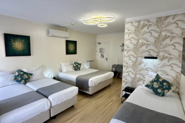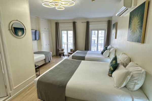 Family room par excellence, the Superior family room of the Hotel Océanic has a volume between 27m² and 32m² for up to 5 people. It offers street or courtyard views and features double glazed windows to provide a quiet and relaxing atmosphere.